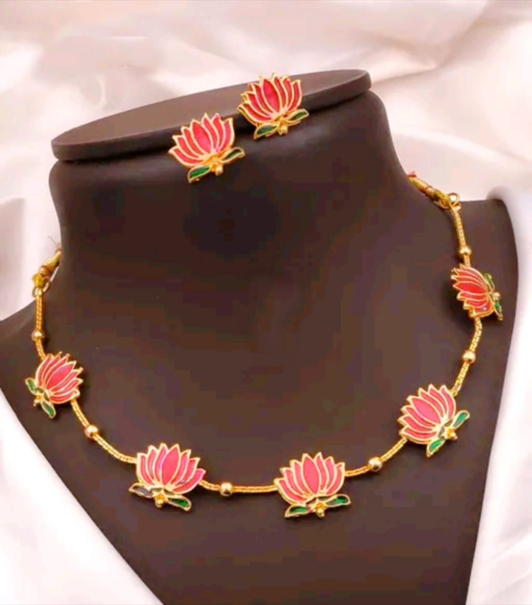 Let your inner beauty bloom with the Lotus Neckpiece, Gold-plated finish with radiant shine.